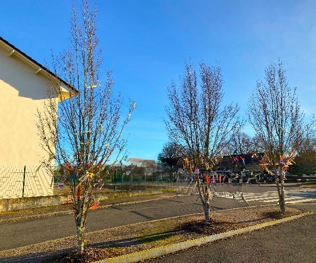Les élèves membres du Conseil de la vie collégienne (CVC) se sont mobilisés, et, accompagnés par Madame Desamais, Conseillère Principale d'Education, ont retenu l'idée de faire appel aux différents publics du collège pour recueillir des tissus nécessaires à la confection de rubans multicolores symbole de diversité, d'unité et de liberté. Ils ont ajouté une sélection d'articles de la "Charte de la laïcité". Ces élus ont reçu l'accord de Monsieur Le Maire, pour pouvoir réaliser un accrochage auquel les élèves et les adultes ont participé. Cet accord a été obtenu suite à la rédaction d'un courrier rédigé par leurs soins. Une manière d'"apprendre autrement".